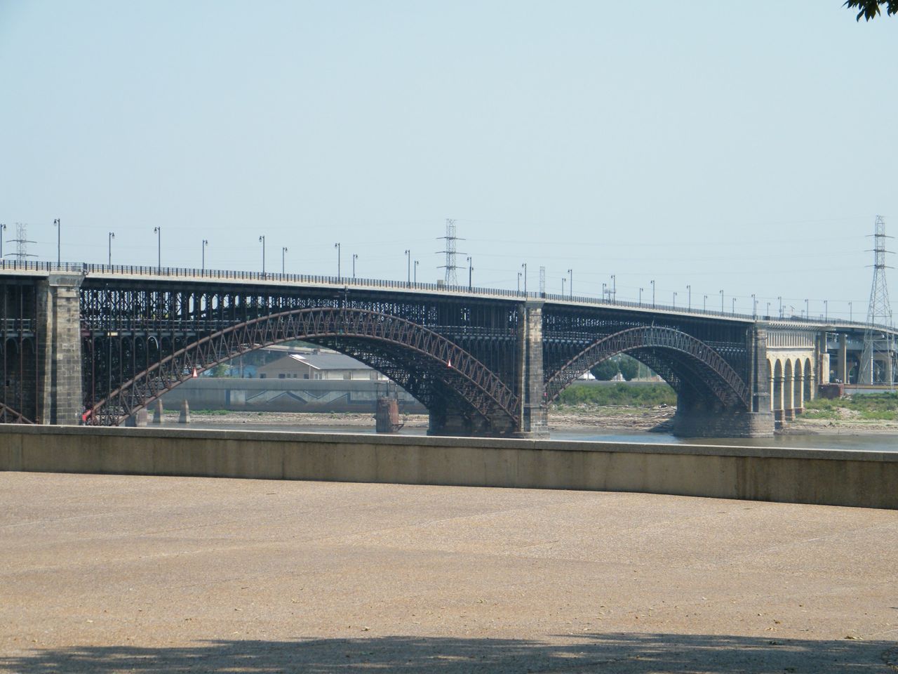 The Eads Bridge is a combined road and railway bridge over the Mississippi River at St. Louis, connecting St. Louis and East St. Louis, Illinois. We're staying in East St. Louis right by the Eads Bridge.